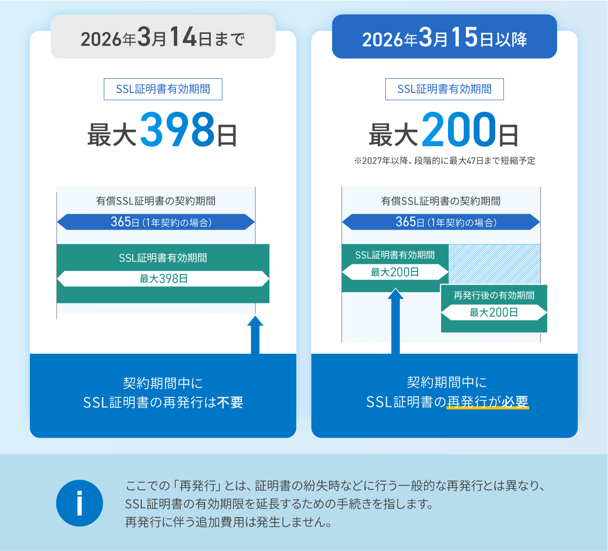 今後はSSL証明書の有効期間が契約期間よりも短い「200日以下」に短縮されるため、